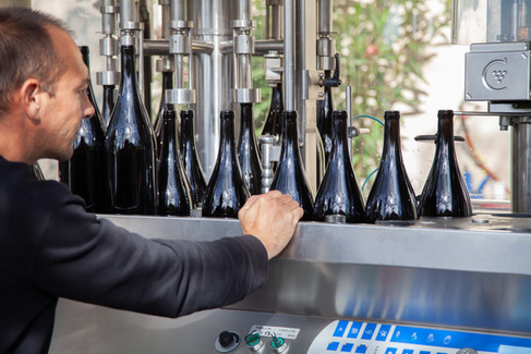 Le vin est goûté à la sortie de la cuve. Puis, les bouteilles sont remplies, sous l'oei attentif de monsieur l'embouteilleur.