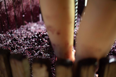 Après une dizaine de jours, le raisin qui distille dans les cuves est à nouveau foulé, puis pressé. Le jus, uniquement, retourne dans les cuves.